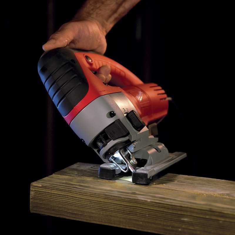 Sierra caladora para seguetas zanco T corte en madera, madera con clavos, acero, bronce, aluminio, hierro fundido, tabla roca, hule duro, ladrillo, fibra de vidrio y materiales compuestos, según la hoja de segueta que se use. *Sistema de sujetador de seguetas Quick Lok. *Potente motor de 6.5 Amp. Hevy Duty. *Control de velocidad variable en interruptor con botón de traba. *Luz de Led que da la mayor visibilidad de la línea guía.