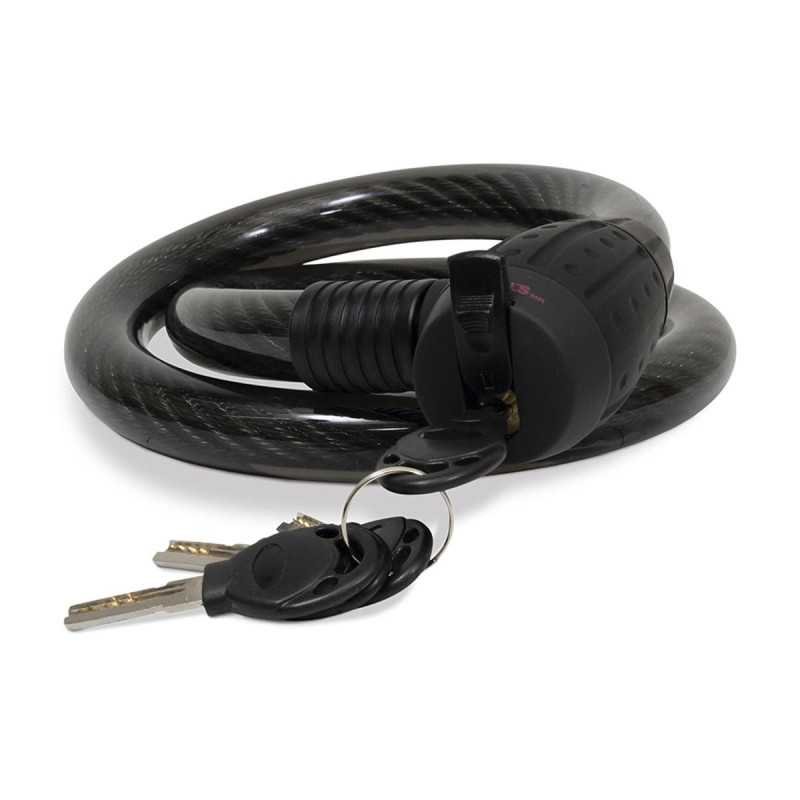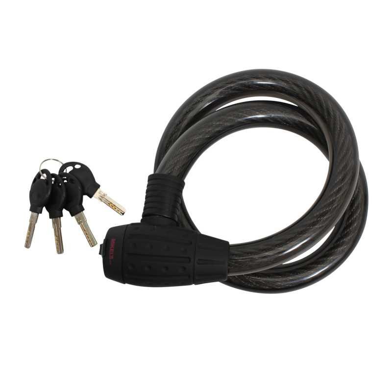 Esta herramienta está fabricada en cable de acero trenzado y forrado con PVC que evita el óxido al ser expuesto a la intemperie. Tiene sistema de llaves de alta seguridad. Pertenece a la línea de seguridad la cual protege contra robo sus pertenencias.