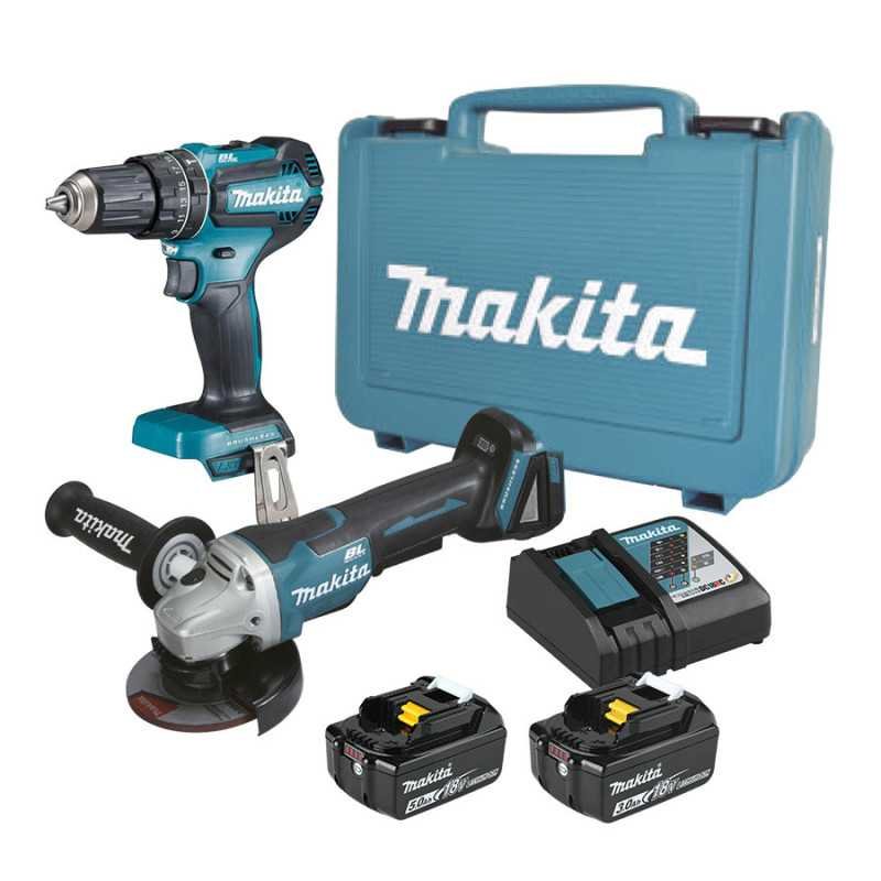 Combo esmeriladora + rotomartillo 18 V BL + kit Makita MAKDGA458ST1KIT
