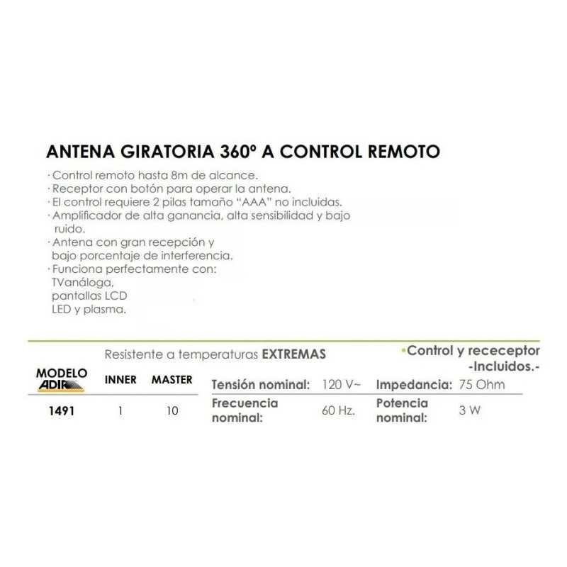 Antena Giratoria 360° Control Remoto 120 V Adir 1491