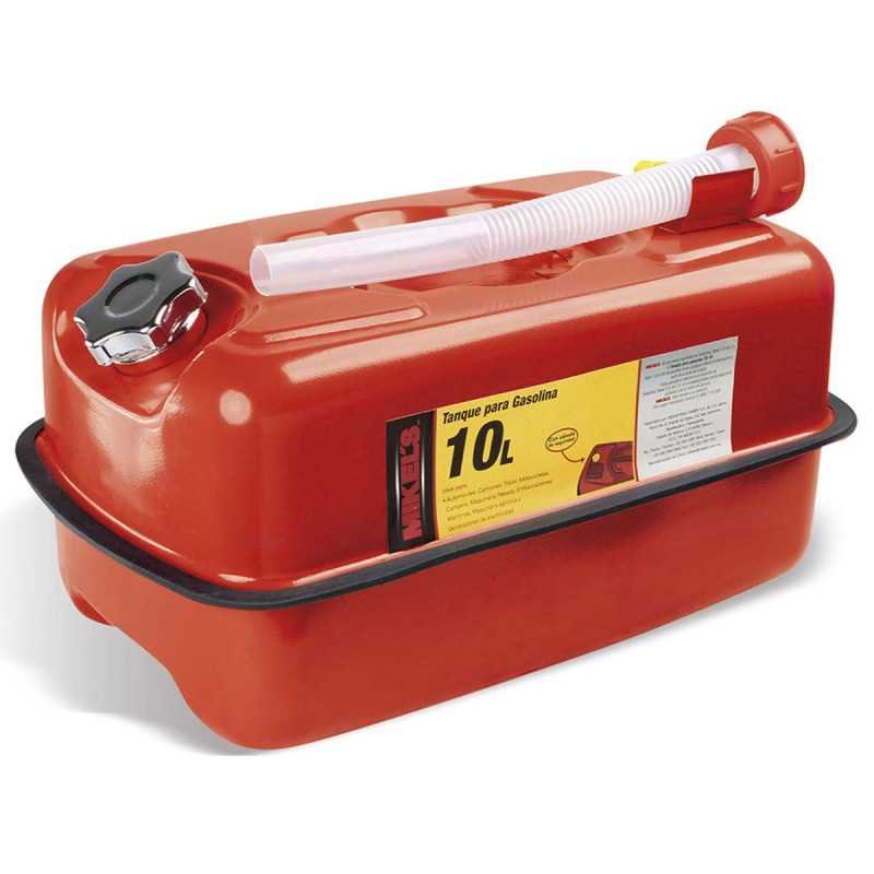 Este equipo transporta y almacena combustible de forma segura. Cuenta con una protección plástica en el borde central que evita fugas, tiene una válvula que libera la presión interna para evita la acumulación de gases. Tratamiento antioxidable al interior. Tiene una práctica agarradera para factilitar su transporte. Incluye un embudo adaptable a la boquilla del tanque para facilitar el surtido de gasolina.