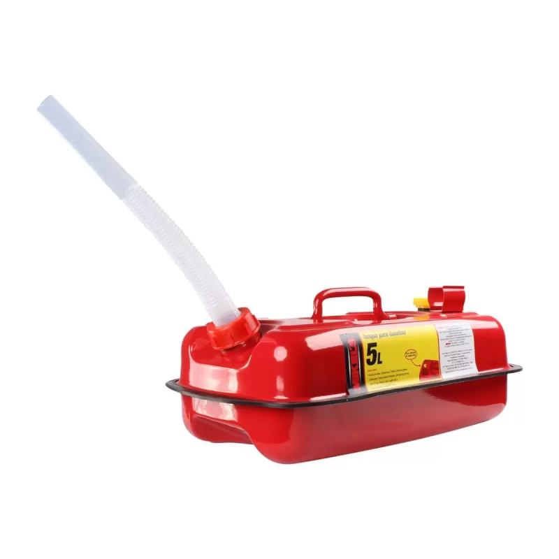 Este equipo transporta y almacena combustible de forma segura. Cuenta con una protección plástica en el borde central que evita fugas, tiene una válvula que libera la presión interna para evita la acumulación de gases. Tratamiento antioxidable al interior. Tiene una práctica agarradera para factilitar su transporte. Incluye un embudo adaptable a la boquilla del tanque para facilitar el surtido de gasolina.