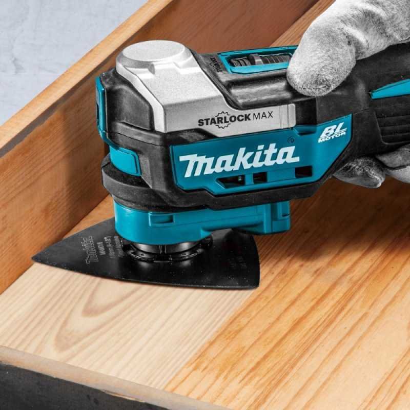 MULTIHERRAMIENTA BL MOTOR 18V AVT MAKITA DTM52RTJX1 Reference: DTM52RTJX1 Compatible con STARLOCK, STARLOCK PLUS y STARLOCK MAX AVT (tecnología antivibración) garantiza un trabajo con muy bajas vibraciones El motor BL ofrece una mayor eficiencia de corte/lijado El dial de control de velocidad variable (10.000-20.000 o.p.m.) permite al usuario ajustar la velocidad al trabajo 12 configuraciones de ángulo cada 30° de 0° a 360° La función anti-restart evita el arranque accidental El sistema de extracción de polvo (opcional) para evitar el exceso de polvo en trabajos de lijado La tecnología de protección extrema (XPT) está diseñada para mejorar la resistencia al polvo y las salpicaduras de agua para su funcionamiento en condiciones adversas 1