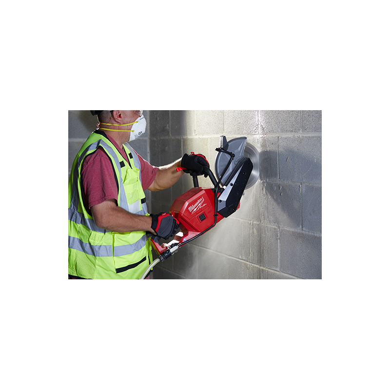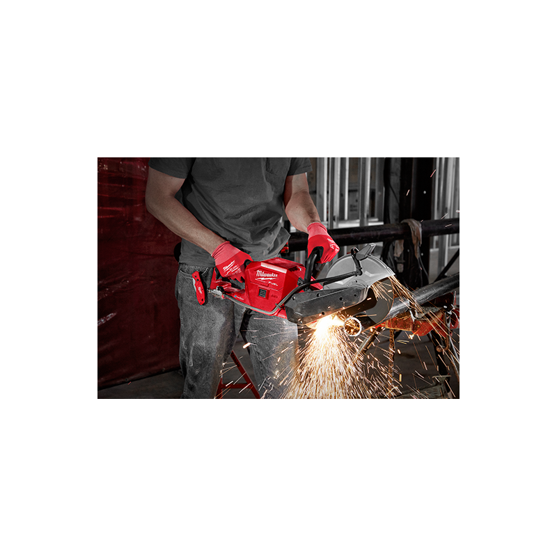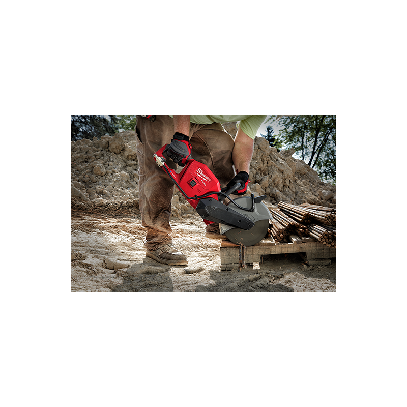 La sierra para cortar funciona con nuestras baterías M18 REDLITHIUM de MILWAUKEE® en vez de usar gasolina como la mayoría de las sierras para cortar.