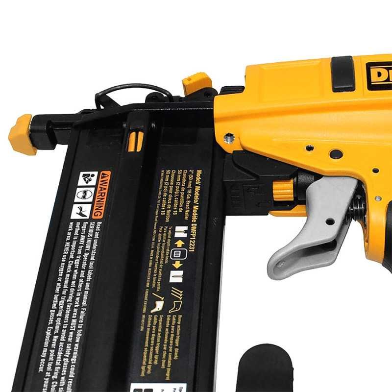 Larga vida del motor libre de mantenimiento. Ajuste sin herramientas. Mecanismo de liberación de atascos sin herramientas para la fácil extracción. Escape trasero para mantener contaminantes fuera del área de trabajo. Clavos calibre de 5/8 "a 2" de longitud. Diseño resistente y ligero. Gancho de cinturón ajustable permite que la herramienta se mantenga fija al usuario. Empuñadura de goma integrado para mayor comodidad. Gatillo estilo secuencial.