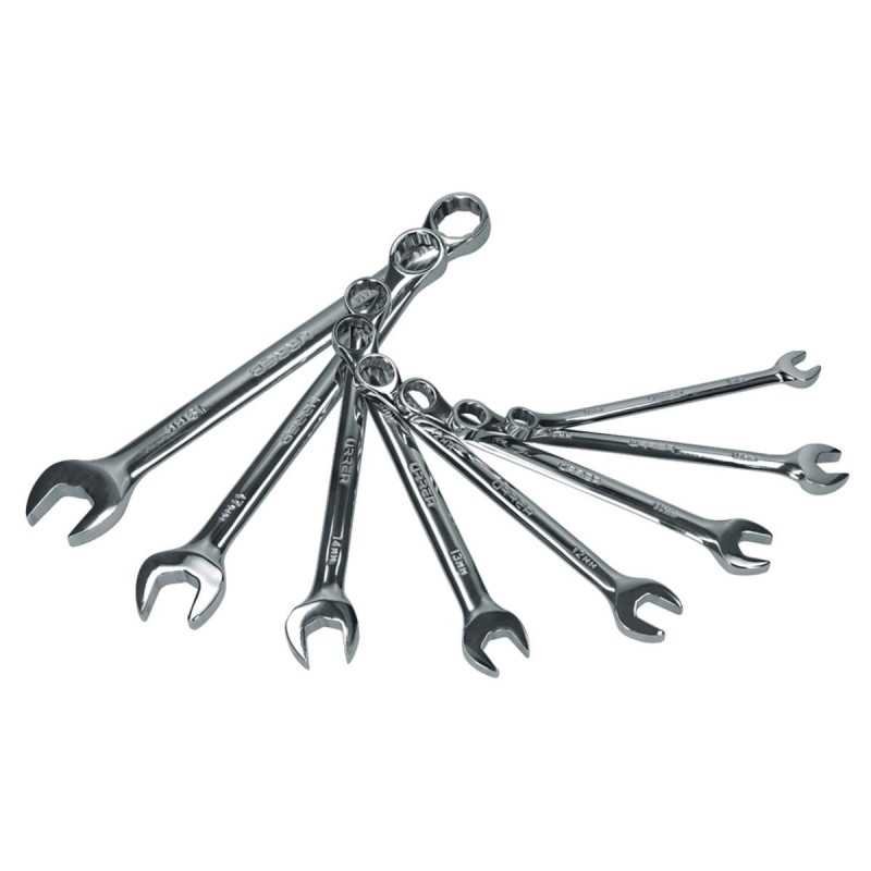 Piezas: 8. Contenido: Llaves combinadas 8mm, 10mm, 12mm, 13mm, 14mm, 15mm, 17mm, 19mm.
