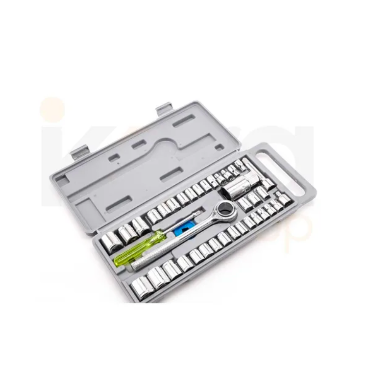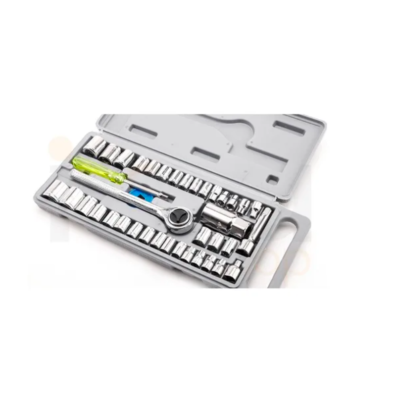 Juego de Dados con Matraca de 40 Piezas con Medidas Estándar y Métrico
