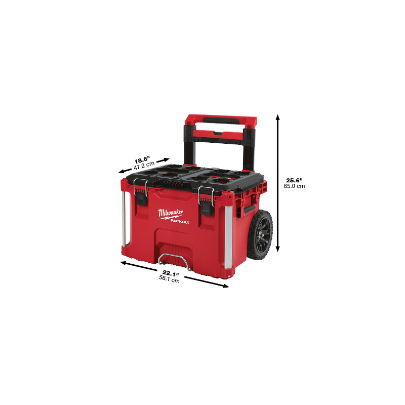 Parte del sistema de almacenamiento modular más versátil y más durable de la industria, la caja de herramientas rodante PACKOUT de Milwaukee está construida de polímeros resistentes a impacto, un asa de extensión de grado industrial, ruedas todo terreno de 9» y esquinas metálicas reforzadas para ofrecer una capacidad de peso de hasta 250 lb y una máxima durabilidad en condiciones del lugar de trabajo exigentes.