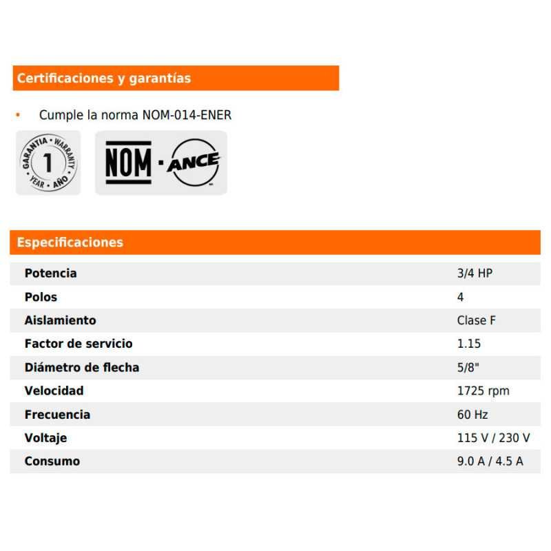 Motor eléctrico monofásico de 3/4 HP, baja velocidad, Truper