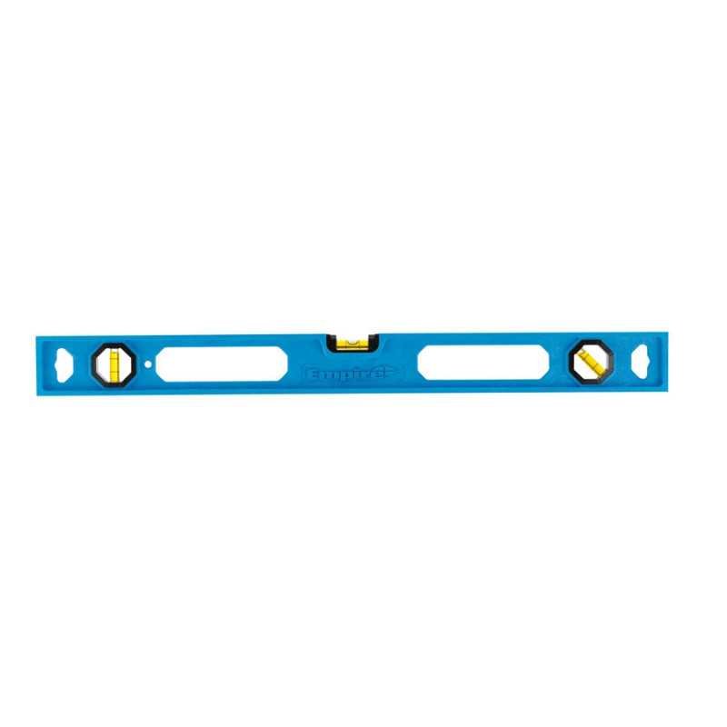 El nivel Empire de Polycast de 24 pulgadas presenta una construcción Polycast duradera que vuelve a su forma original después de flexionarse y resiste la rotura bajo uso normal. Los duraderos viales acrílicos proporcionan lecturas de plomada, nivel y 45 grados con una precisión de hasta 0,001 pulgadas. El nivel es resistente a la intemperie para un uso prolongado y resiste dañar o rayar los muebles o las superficies con las que trabaja.