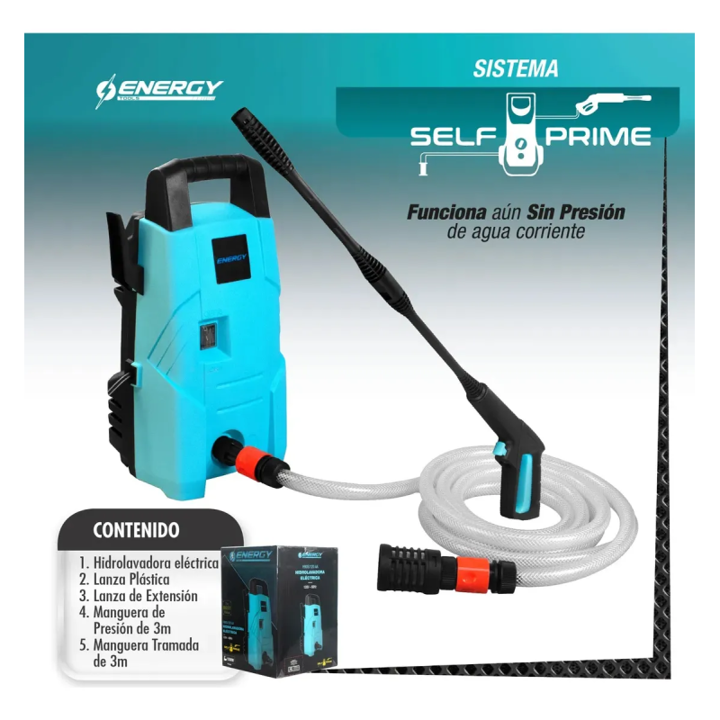Hidrolavadora 1305Psi 1200 W Cable 5Mts, Manguera 3Mts 120V ENERGY H90S/120AA