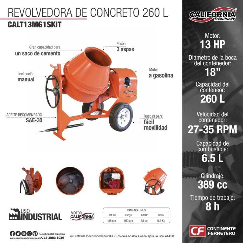 CALT13MG1SKIT CALIFORNIA CONSTRUCTION Revolvedora De Concreto 260 Litros 13 Hp 1 Saco Motor California