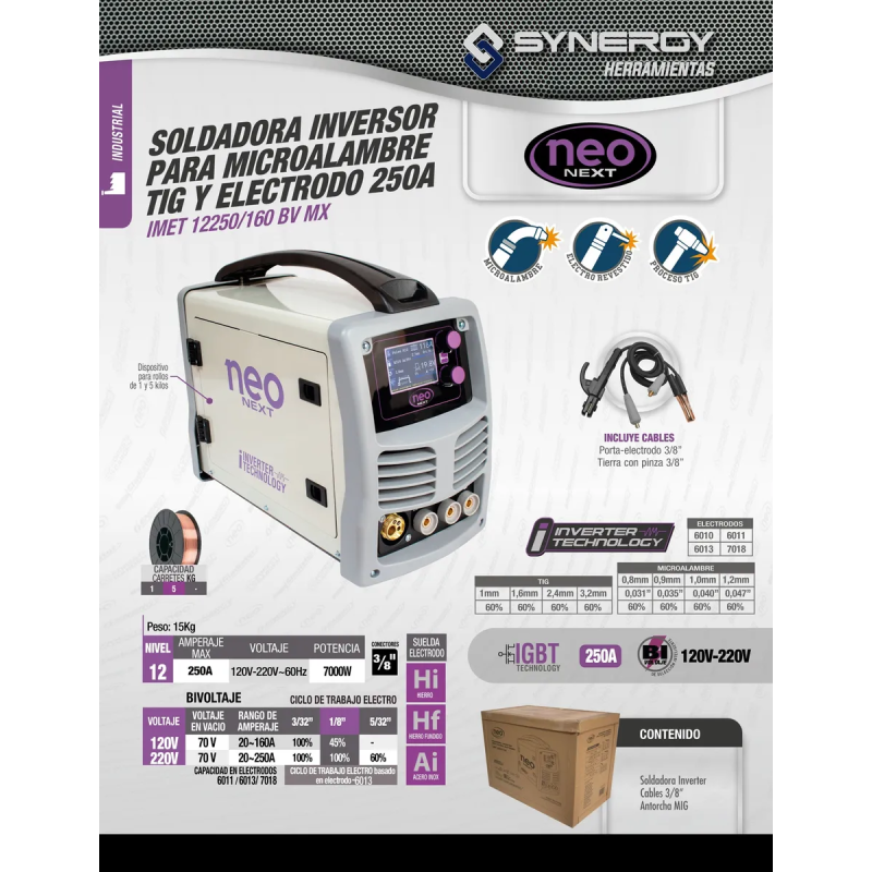 Envió a toda la repúblicaDHL, Estafeta, Fedex, Castores,Soldadora Inversora Electrodo Mig Tig Neo Imet12250/160bvmx