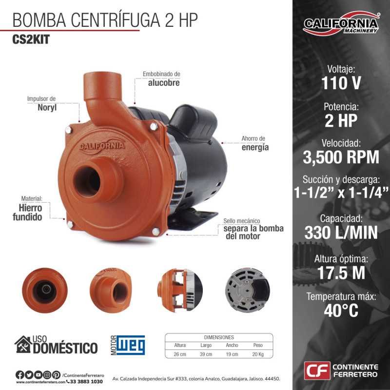 Bomba Centrífuga 1-1/4" x 1" 2 Hp 110 V Motor Weg CS2KIT