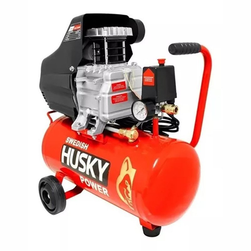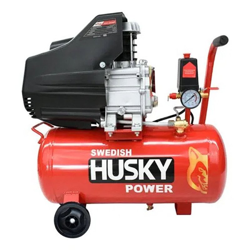 Compresor semiprofesional con tanque horizontal y potencia de 2.5 hp marca SWEDISH HUSKY POWER.