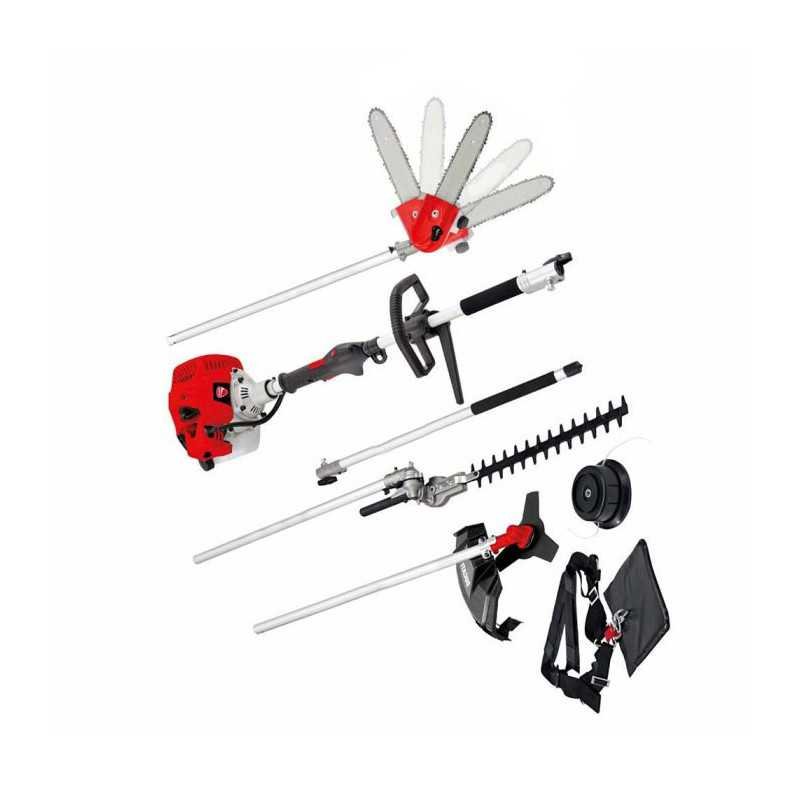 Motosierra multifuncional semiprofesional con extensión marca SWEDISH HUSKY POWER con motor de 2 tiempos. Manubrio tipo D. Transmisión recta. Consta de una gran variedad de accesorios para todas las necesidades de mantenimiento de áreas verdes (desrrame en árboles, cortasetos y poda de jardínes). Incluye cuchilla cortasetos, sierra de cadena, cabezal para hilo y cuchilla de 3 picos.