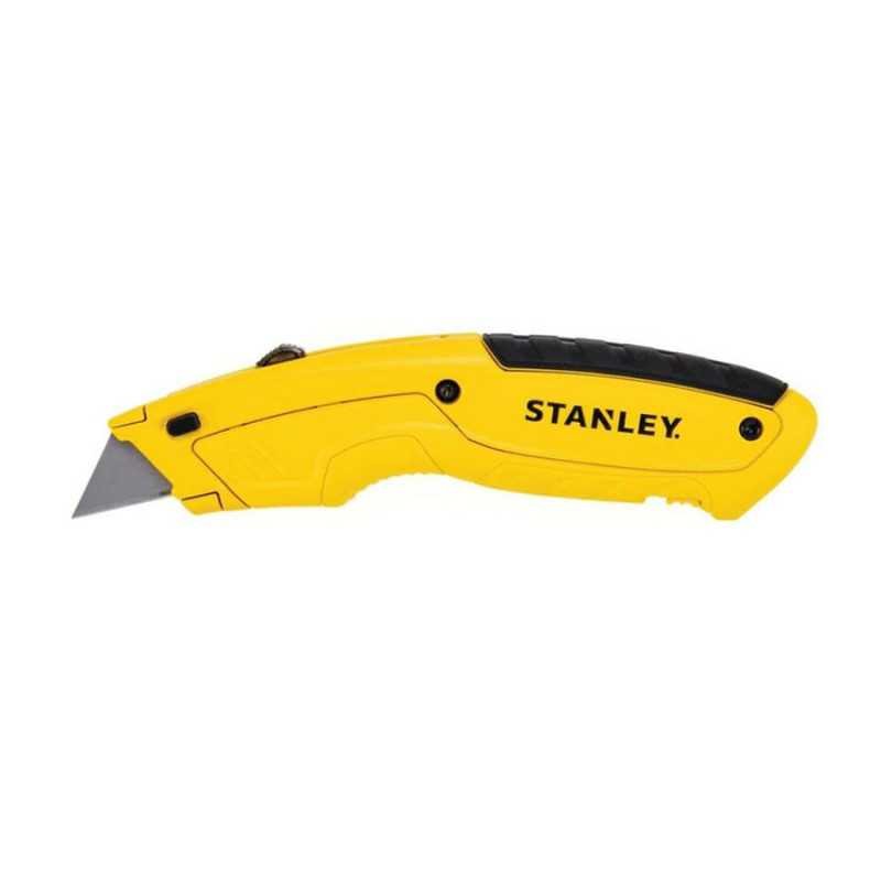 Cuchilla de hoja retenible de 5 posiciones ofrece control de profundidad para su corte y botón pulsador de cambio instantáneo permite un cambio fácil de hoja.