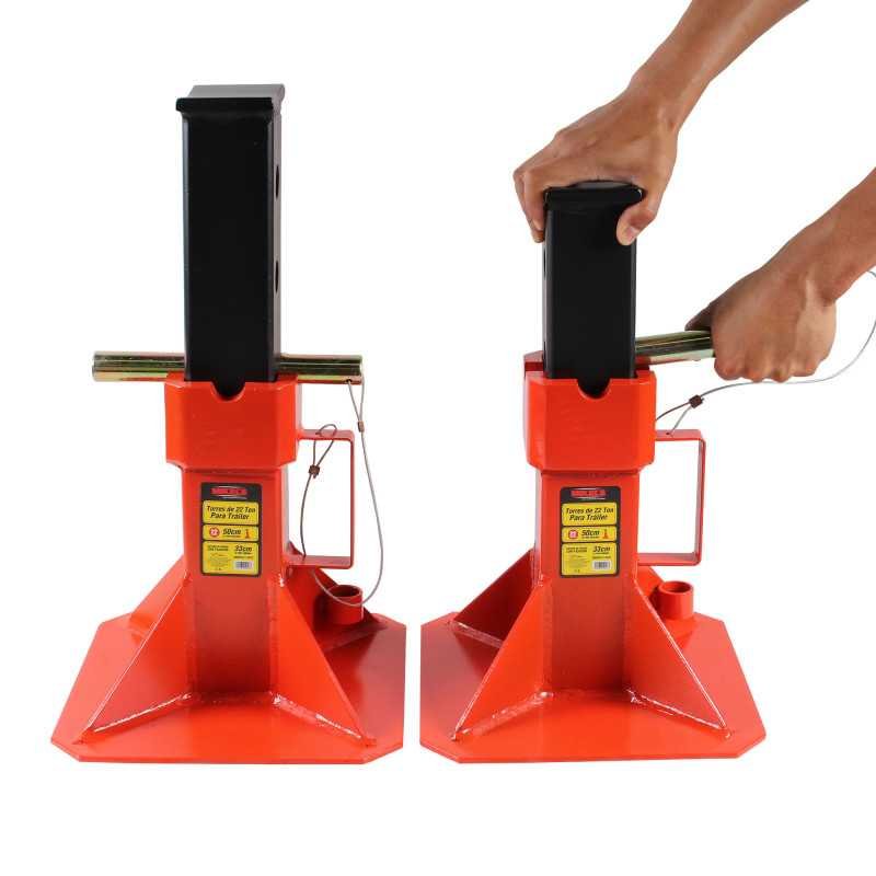 Este equipo sirve para soportar y sostener los tráiles durante su reparación. Permitan tener una mayor visibilidad del lugar a reparar y al mismo tiempo amplían el área de trabajo. Fabricadas en acero reforzado y soldadas para proporcionar ultra resistencia. Acabado de esmalte horneado para resistir la corrosión. Ajustables a diferentes alturas para soporte. Silletas de placa metálica altamente resistentes. Estas torres sólo deben utilizarse en superficies sólidas y estables.