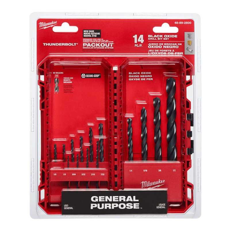 Juego de brocas con acabado de óxido negro Thunderbolt. Están diseñadas para una gran durabilidad y larga vida. La red de la broca Thunderbolt cuenta con un núcleo más grueso que una broca estándar, que proporciona resistencia a la rotura y protege contra la rotura de carga lateral. Una forma de flauta parabólica especialmente diseñada despeja virutas y restos rápidamente para mantener la broca fría. Inicio preciso sin desplazamientos gracias a su punta hendida a 135° que permite un inicio rápido al instante.