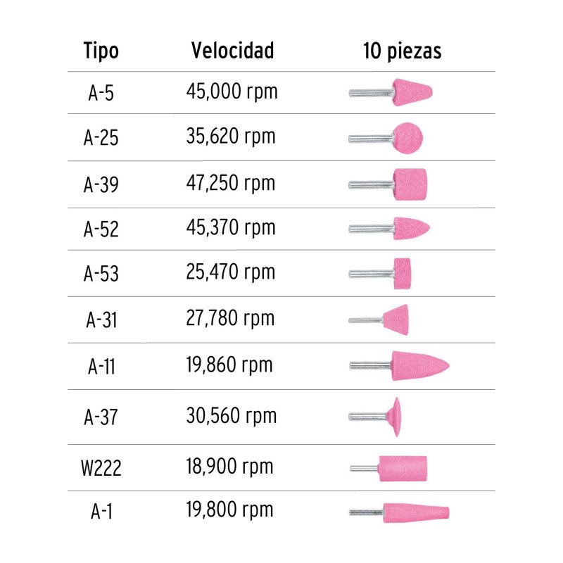 10 piezas tipo: A-5, A-25- A-39, B-52, B-53, A-31, A-11, A-37, W222, A-1