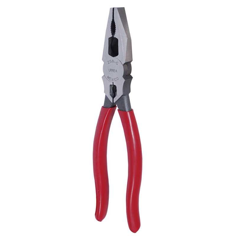 Pinza para electricista con mango rubber grip de 8-17/32" universal corte lateral quijadas Urrea 258G