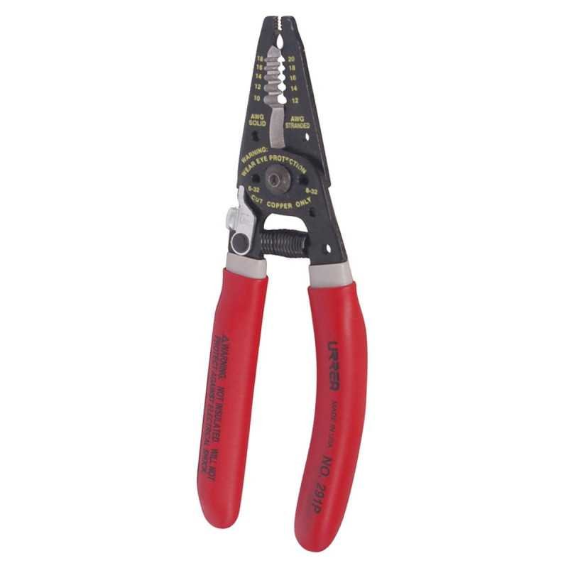 -Pinza pelacables 10-20AWG ergonómica Urrea -Mangos curvos brindan mejor agarre y confort. -Cable sólido 10 a 18 AWG. -Cable trenzado 12 a 20 AWG. -Longitud 7 1/4".