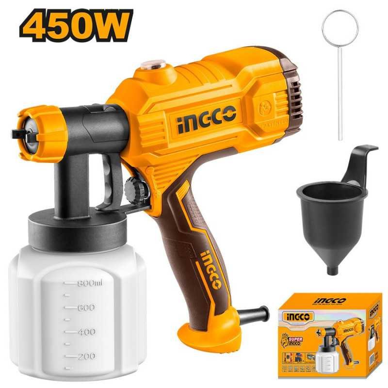 Voltaje: 110-120V~50/60Hz Potencia de entrada: 450W Presión de pulverización: 0,1-0,2 bar Máx. flujo: 550 ml/min Máx. viscosidad: 120DIN-s Capacidad del contenedor: 800ml Con 1 Uds taza medidora de viscosidad Con 1 Uds. Aguja de limpieza de boquilla Embalado en caja de color