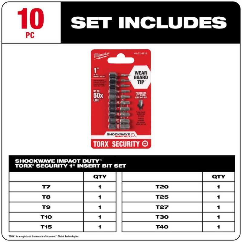 Puntas de Impacto torx de seguridad 1" 10 piezas variado MILWAUKEE 48324618