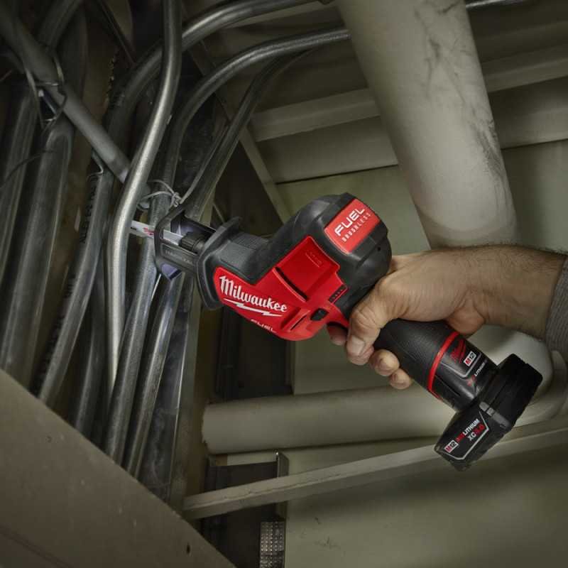 La M12 FUEL HACKZALL® es la sierra de corte más rápida y más potente de su clase, y ofrece más de 4 veces más tiempo de funcionamiento, un corte hasta un 70% más rápido y una vida útil de la herramienta hasta 6 veces más larga que las sierras de la competencia. El diseño compacto para una mano proporciona un control superior y la capacidad de realizar cortes en espacios reducidos. Su diseño liviano es óptimo para aplicaciones de corte por encima de la cabeza. El motor sin escobillas POWERSTATE supera a todos los principales competidores con una salida de potencia constante, pero funciona más fresco sin componentes que se puedan usar. La inteligencia REDLINK PLUS garantiza un rendimiento optimizado y protege su inversión de sobrecargas, sobrecalentamientos y descargas excesivas. El paquete de baterías M12 REDLITHIUM XC4.0 proporciona más trabajo por carga y más trabajo durante la vida útil del paquete que
