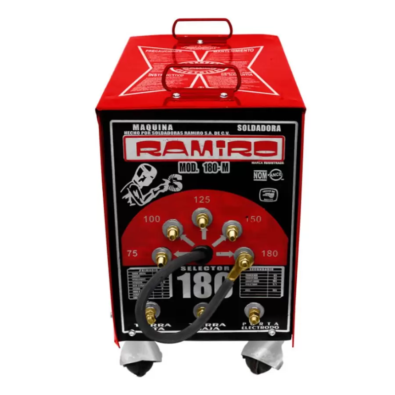 Soldadora de 110 volts, para todo trabajo de herrerìa, sirve para soldar hasta 8 electrodos consecutivos de 6011 y 6013 de 3/32, 1/8 y 5/32. Trabaja 2 ciclos de 2 min. de operación x 8 min. de descanso, el tercer ciclo de 2 minutos de operación requiere de un periodo de 30 min. de descanso. Es una soldadora de corriente alterna ó transformador para soldadura de arco, ideal para manteniemiento en talleres industriales. Se debe de conectar a una fuente de energía monofásica de 127-220 Volts, esta planta permite manejar electrodos cuyo diámetro sea desde 3/32 y hasta 3/16. Ligera, facil de transportar. Modelo: 180-M Hecho en México.