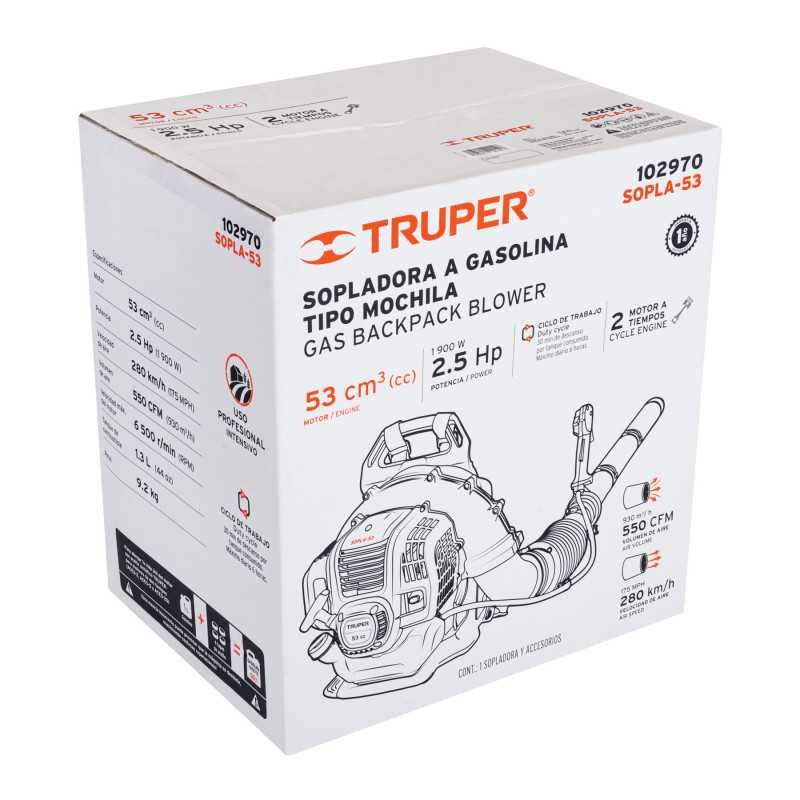Sopladora con motor de 53cc a gasolina, tipo mochila,